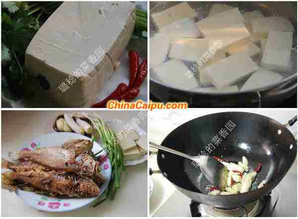 9炒出香味后,倒入三碗清水。水量多一些,要能掩住鱼和豆腐。